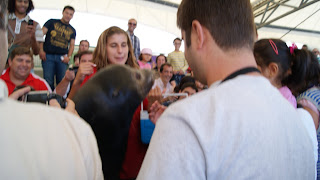 O Gabriel adorou, estava muito entusiasmado, só no show dos golfinhos é que ficou mais impaciente, devido à espera, mas passou-lhe com a surpresa de ter o leão marinho a passar mesmo na fila ao lado!!!